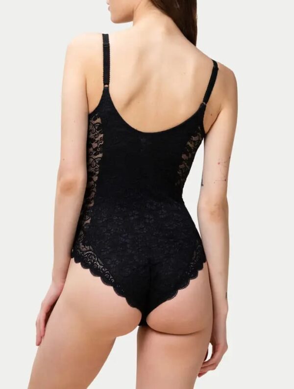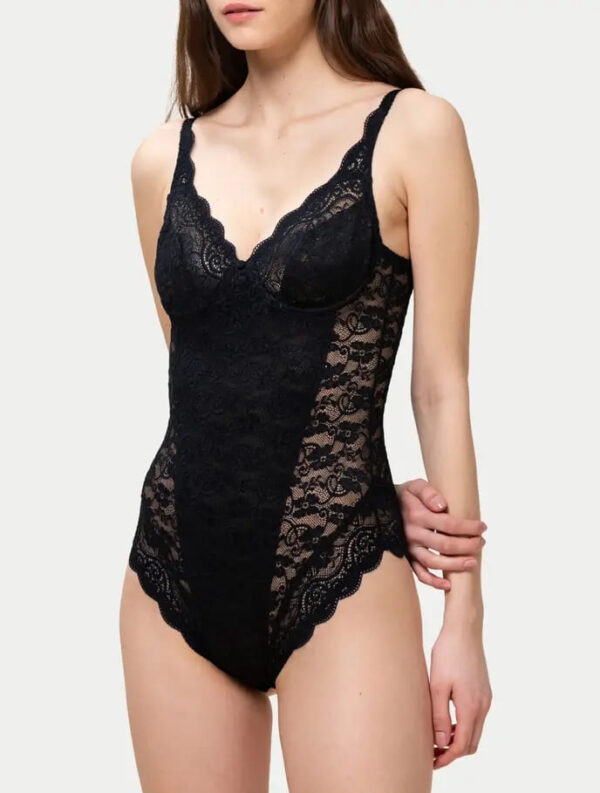• Sensualità che non rinuncia al comfort → il pizzo elastico trasparente avvolge il corpo con eleganza, mentre la parte centrale foderata offre discrezione e sostegno.