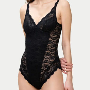Body in pizzo con scollatura profonda e ferretto leggero per sostegno. Tessuto morbido ed elastico, dettagli in pizzo raffinati e vestibilità confortevole