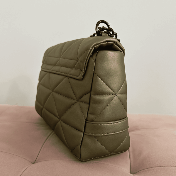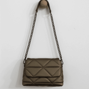 Realizzata in ecopelle premium effetto seta, questa borsa si distingue per la trama trapuntata geometrica, morbida al tatto e irresistibilmente elegante. Il colore bronzo, raffinato e contemporaneo, cattura la luce con riflessi caldi, perfetti per esaltare outfit sia da giorno che da sera.