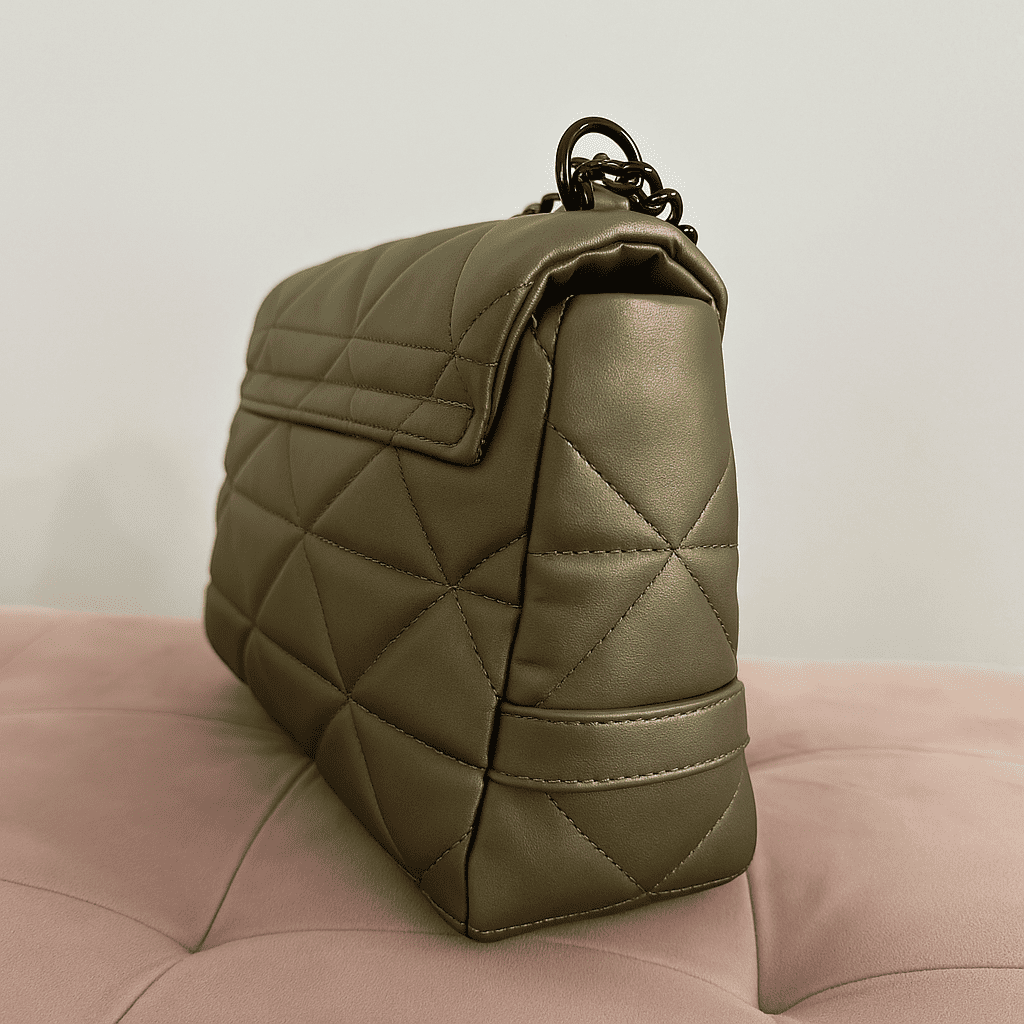 L’interno spazioso è pensato per accompagnarti ovunque: perfetta per il lavoro, per un’uscita con le amiche o per una serata speciale. La catena in metallo brunito aggiunge un tocco di carattere, mentre la chiusura magnetica la rende pratica e sicura.