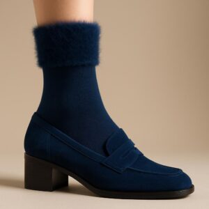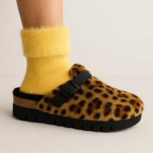Il bordo in pelliccia è morbido, non stringe, non lascia segni e non pizzica. Il tessuto è elastico al punto giusto e si adatta perfettamente al piede, senza scendere durante il giorno. Questo significa comfort garantito, zero fastidi, zero regolazioni continue.
