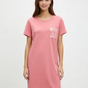 Camicia da Notte Donna in Cotone Rosa – Comfort Naturale con Dettaglio Taschino