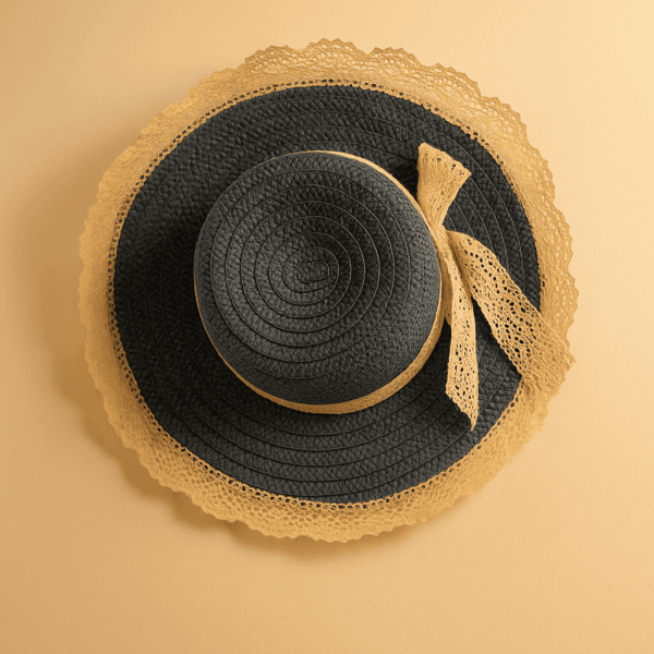 ✨ Cappello in Paglia con Nastro in Pizzo – L’Eleganza dell’Estate