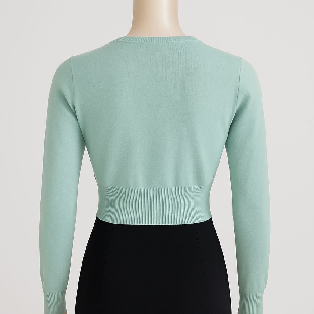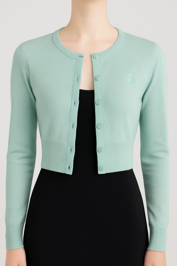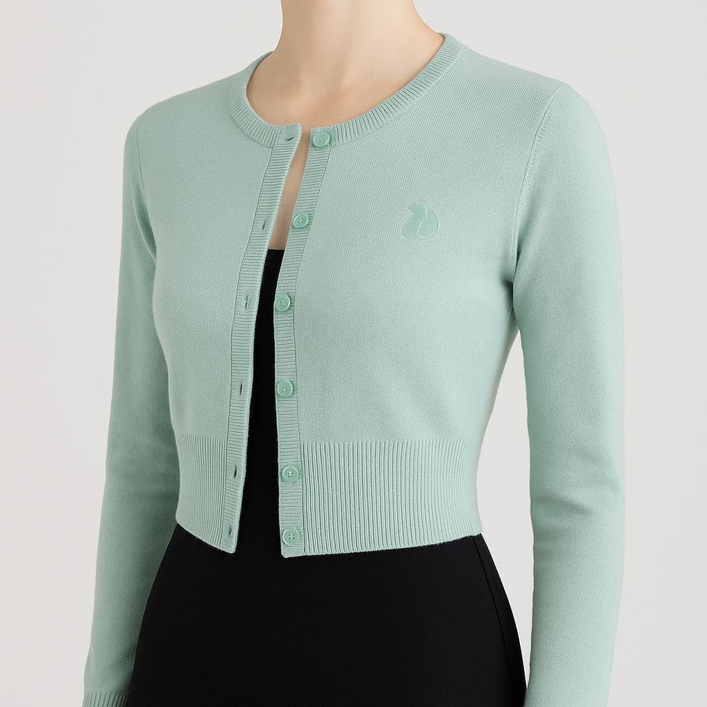 Scopri il cardigan corto verde menta in cotone 100%, un piccolo capolavoro di stile pensato per chi ama la semplicità raffinata e la leggerezza dei tessuti naturali.