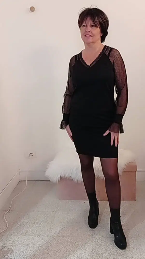 Abito rubino con maniche in tulle Art. Lea