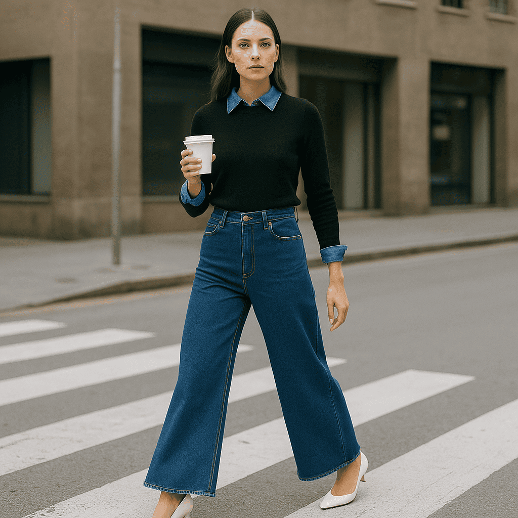 Perché combina stile, comfort e proporzioni perfette. La gamba larga non è solo una tendenza: è un taglio studiato per armonizzare le linee del corpo, slanciare la figura e rendere ogni outfit più moderno. La vita alta sostiene e definisce il punto vita, creando quell’effetto “gambe più lunghe” che tutte amiamo.