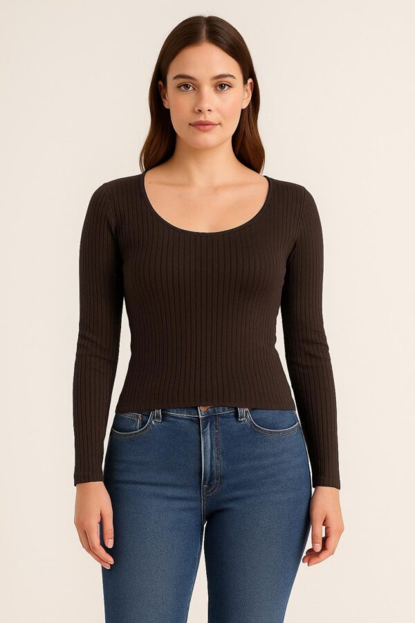 La maglia color cioccolato è uno di questi: un abbraccio morbido e avvolgente che sa esaltare la femminilità con discrezione, rendendo ogni movimento naturale e ogni gesto più sicuro.