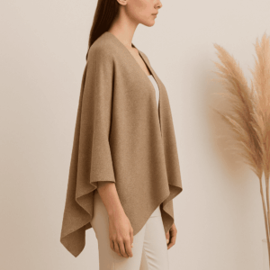 È una mantella che accarezza, valorizza e accompagna, senza mai appesantire: una seconda pelle luminosa, da indossare ogni volta che vuoi sentirti bella, comoda e speciale.