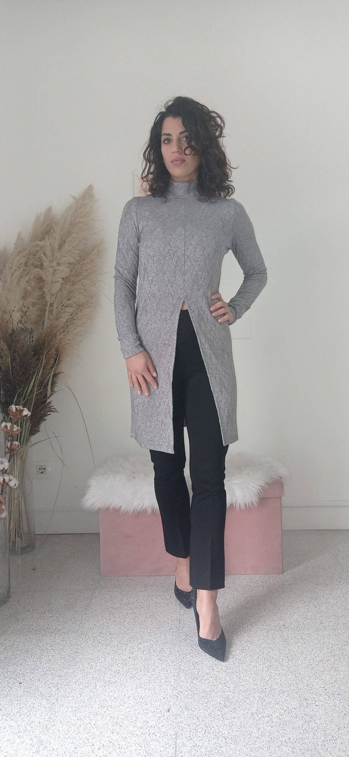 Perché Sceglierla: La Maglia Maxi con Spacco Davanti è il capo che stavi cercando per rinnovare il tuo stile con semplicità e raffinatezza. Che tu la indossi con un paio di jeans per un look casual o con una gonna per una serata speciale, questa maglia è garantita per farti sentire elegante e a tuo agio in ogni situazione.