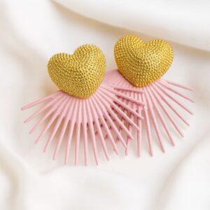 Questi orecchini a cuore dorato con ventaglio rosa cipria non sono semplici bijoux: sono un messaggio.