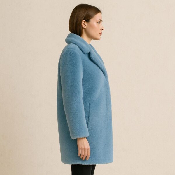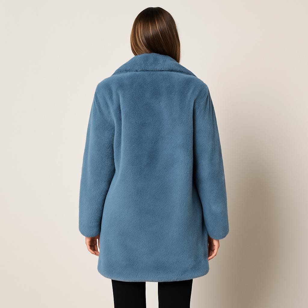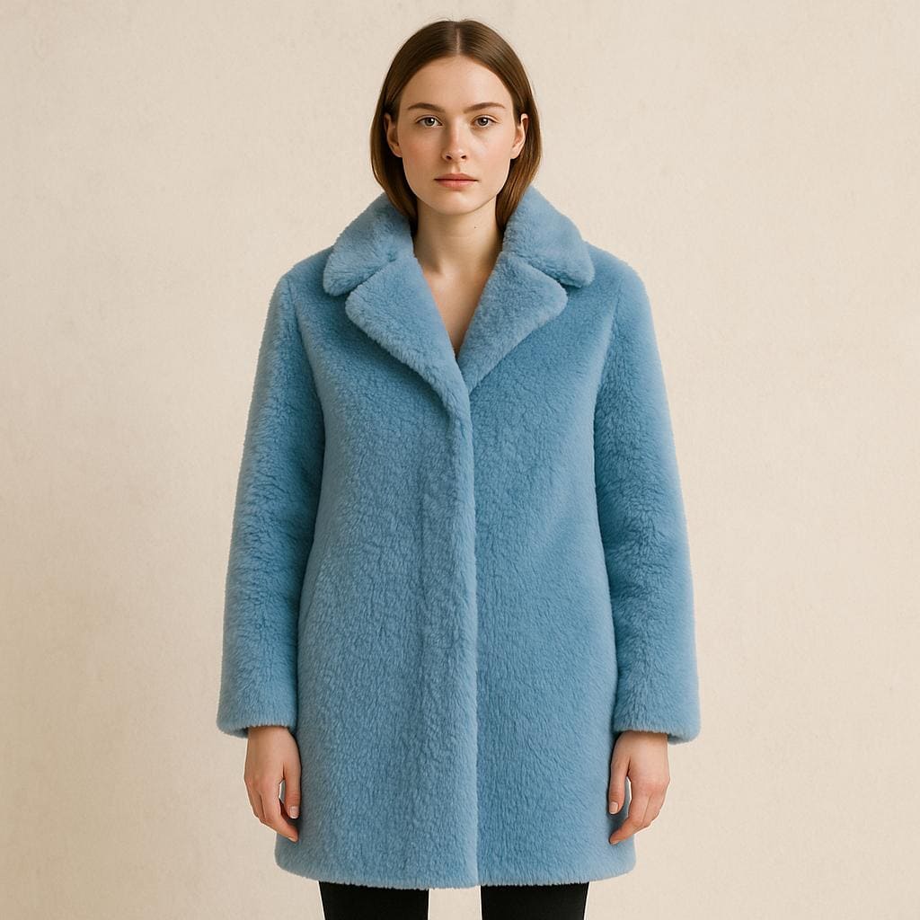 La pelliccia ecologica azzurra firmata Emanuela Biffoli è pensata proprio per questo: abbracciarti con calore e leggerezza, regalandoti quella sensazione di comfort lussuoso che solo i capi ben fatti sanno offrire.