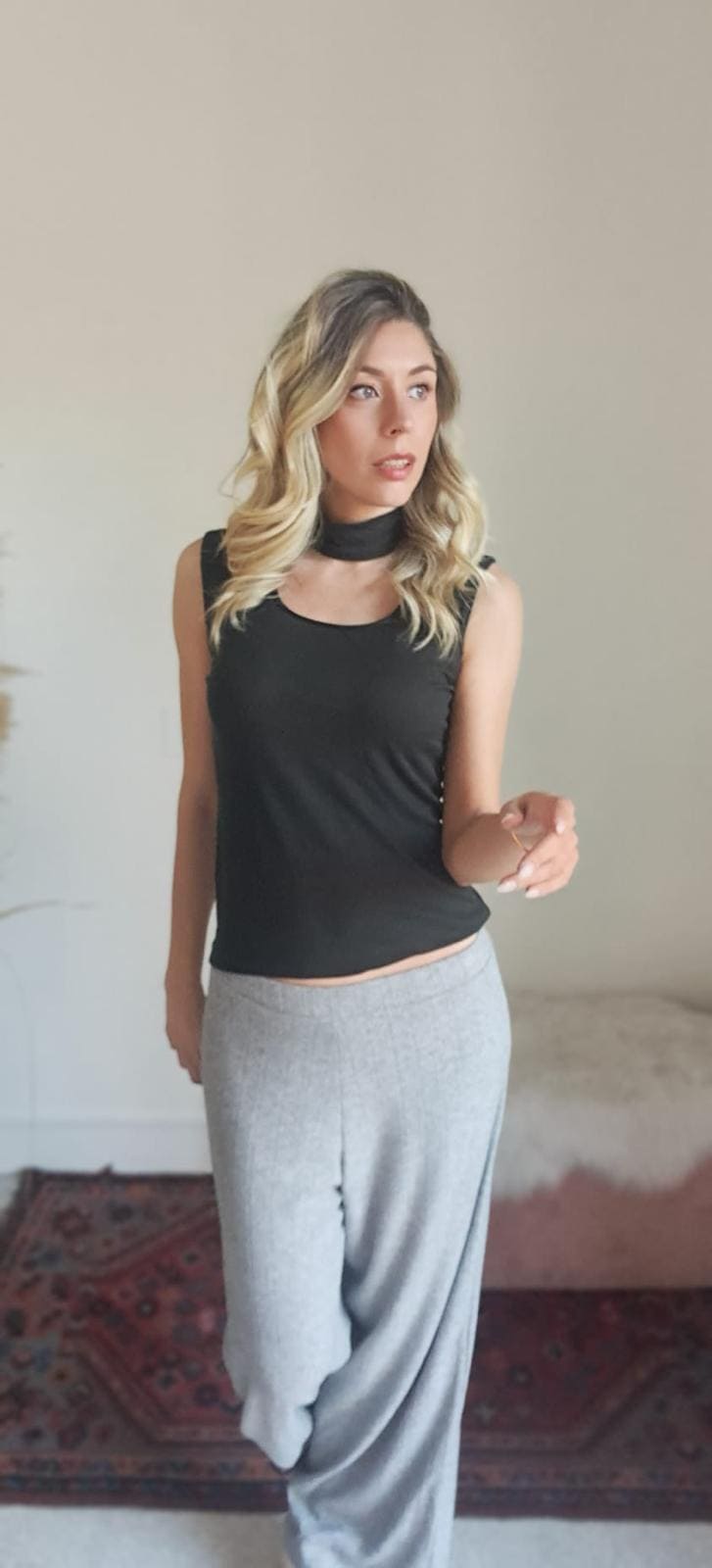 Il Top Verde Scuro con Collo ad Anello è uno di quei capi che non restano mai nel cassetto. Lo indossi una volta… e diventa subito il tuo preferito.