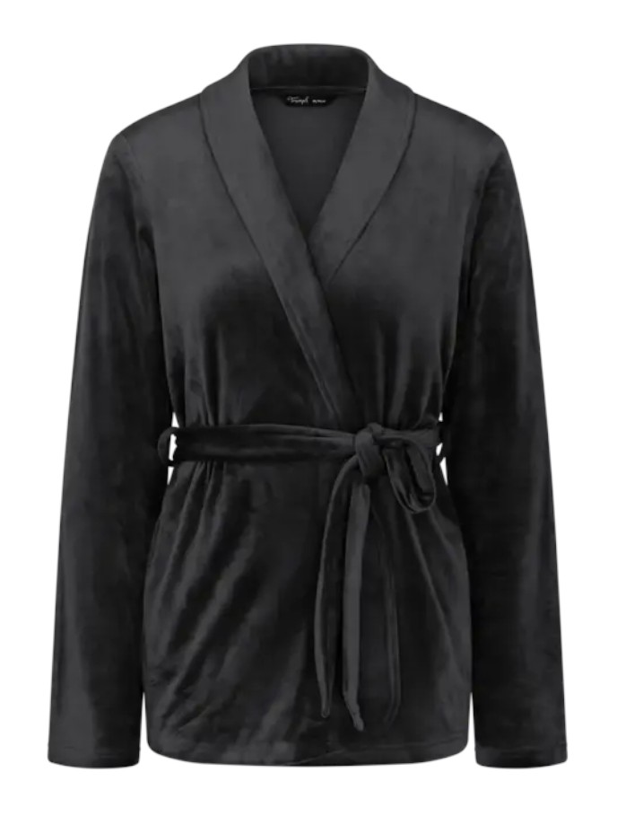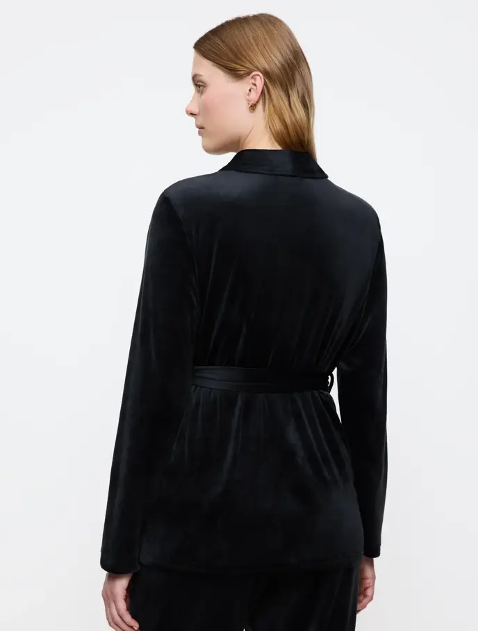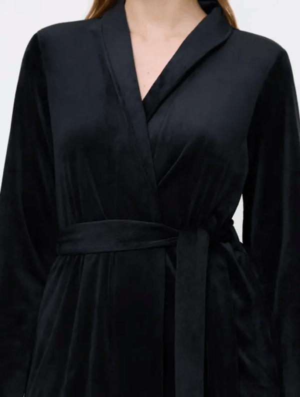 Questa vestaglia in velour nero è la risposta.